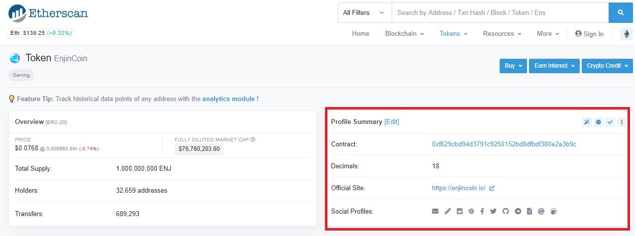 이렇듯 각 메인넷 블록탐색기에서 해당 토큰의 컨트랙트 주소를 확인할수 있습니다.