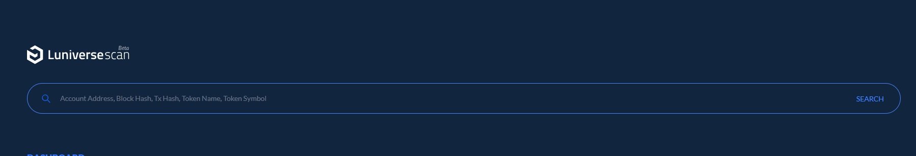 우리가 아하 에어드랍으로 받는 AHT토큰의 경우 루니버스 탐색기(https://scan.luniverse.io/dashboard)에 접속을 하면 아래 화면에서 토큰명을 검색하시면 됩니다.