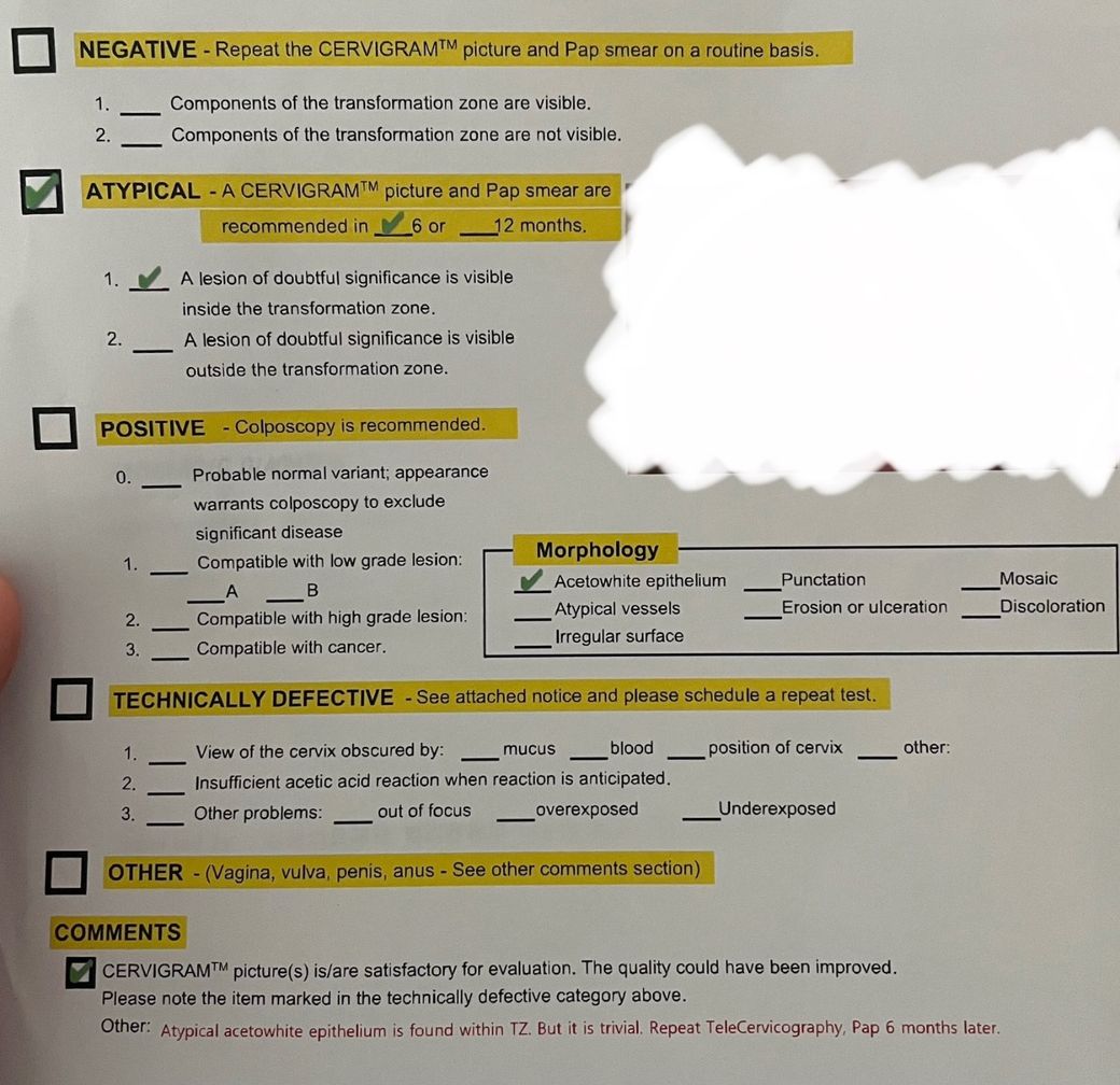 자궁경부암 조직검사 결과지 해석이 궁금해요