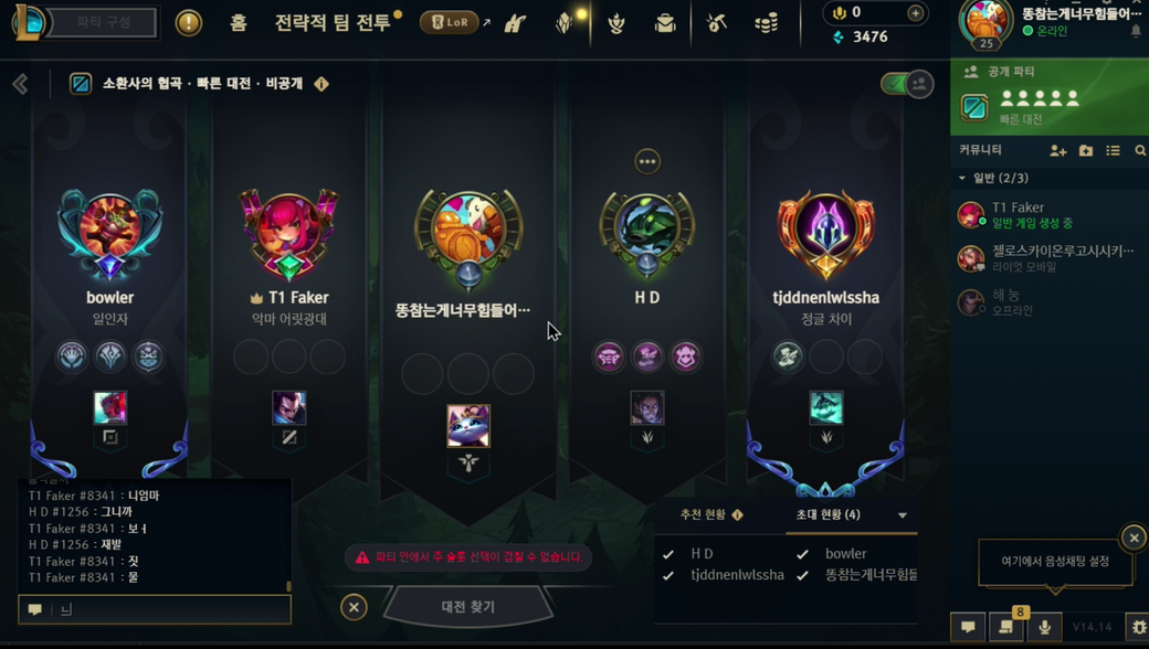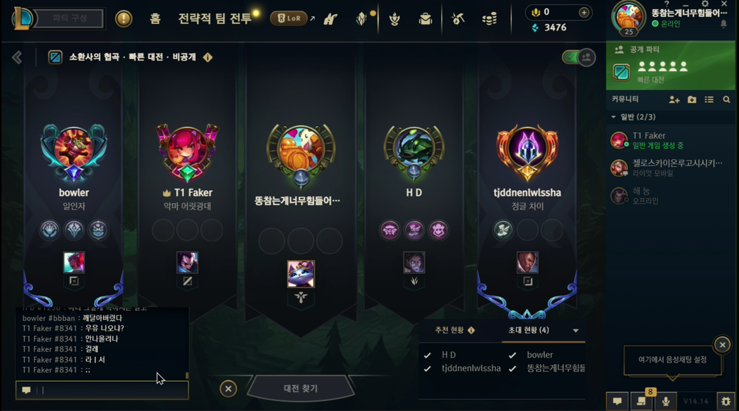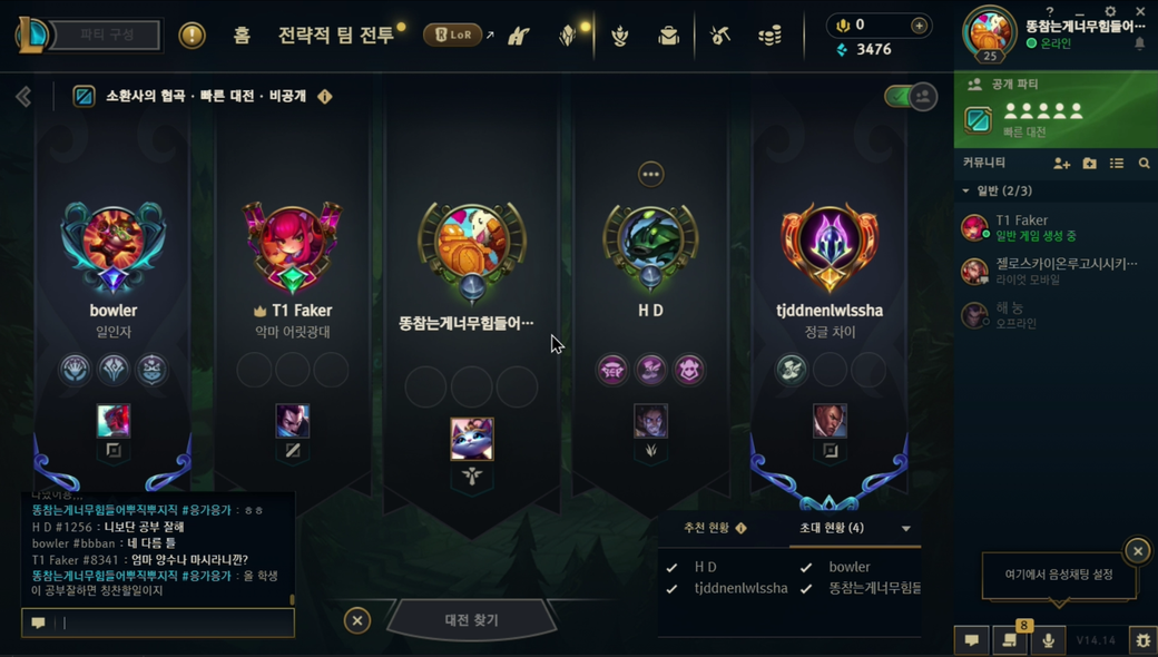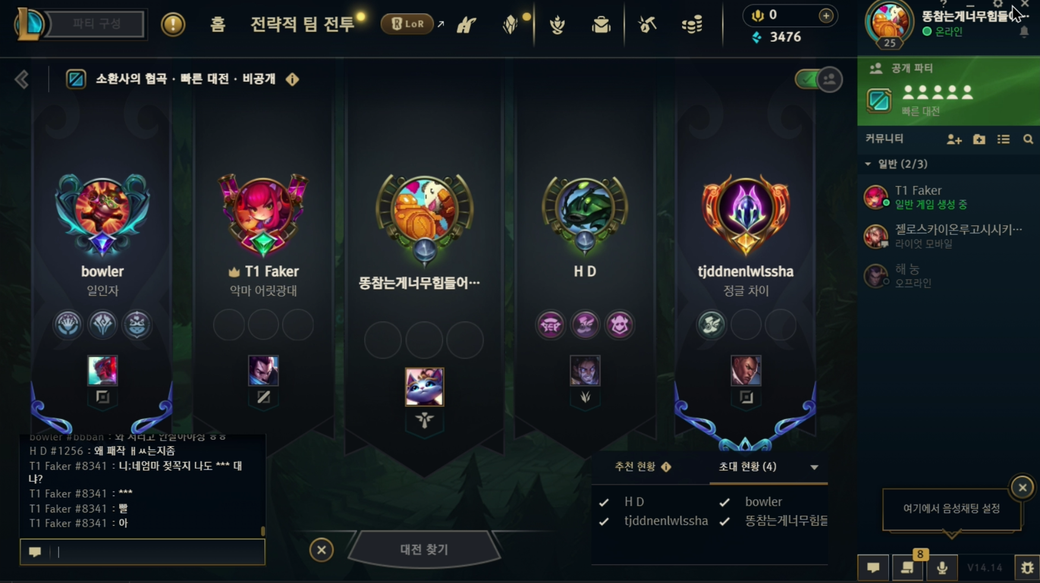 게임 중 랜덤으로 만난 4명중 3명이 같이 게임하던 사람들이었던것 같습니다