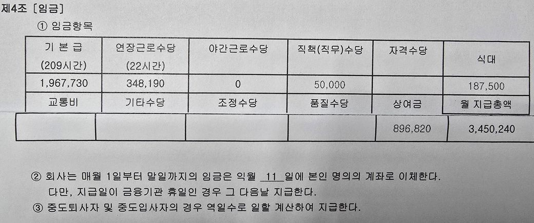 그런데 제가 받은 근로 계약서에는 제4조 (1)임금으로