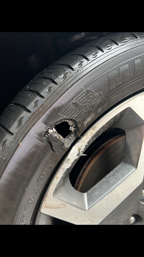 단순히 부분 처리로 되는 것이 아니고 타이어를 교체해야 하는 큰 구멍이 난 경우에는 보험 회사에 긴급 견인 서비스