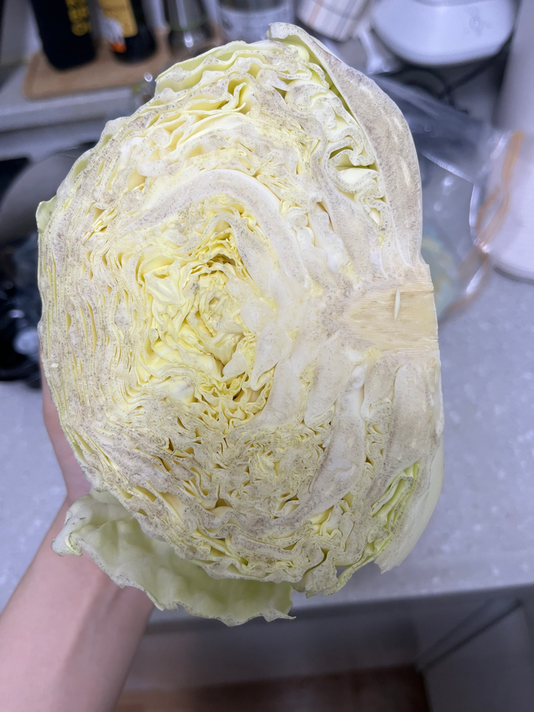 양배추를 자르게 되면 그 단면 자체가 공기와 접촉을 해서 산화 된 것이라고 생각하시면 될 것 같습니다.
