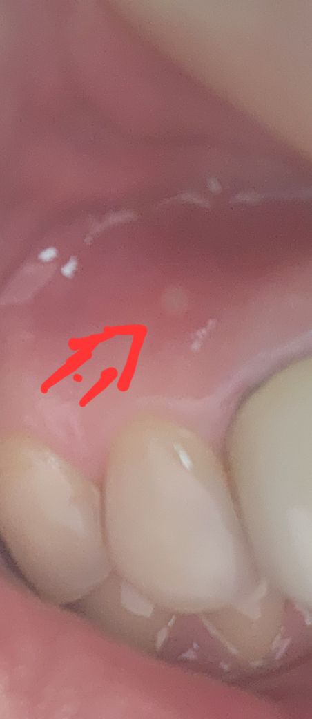 잇몸에 하얀색 점. 잇몸 염증일까요~? 치아 염증일까요~?
