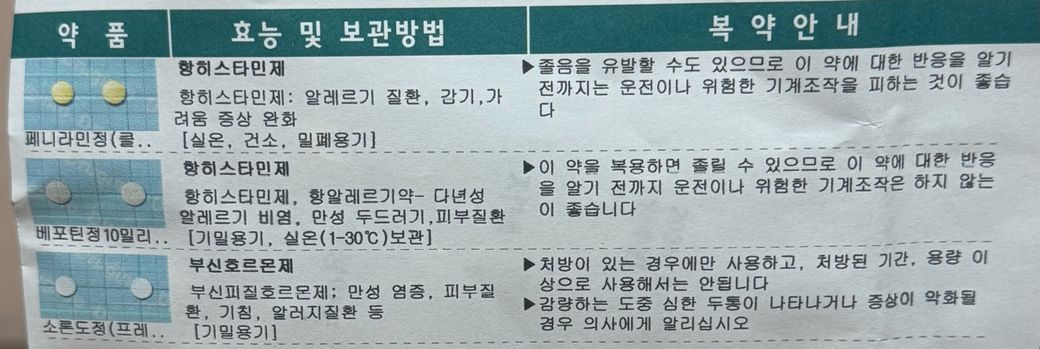 안녕하세요 경구피임약 멜리안을 2년 넘게 장기 복용 중입니다 페니라민정(항히스타민제), 베포틴정(항히스타민제), 소론도정(부신호르몬제) 이렇게 세 가지 처방 받았어요 이 세 가지 알레르기약을 경구피임약과 함께 복용하면 피임 효과가 감소하는 등 영향이 있을까요? 약은 사진으로 자세하게 첨부하겠습니다
