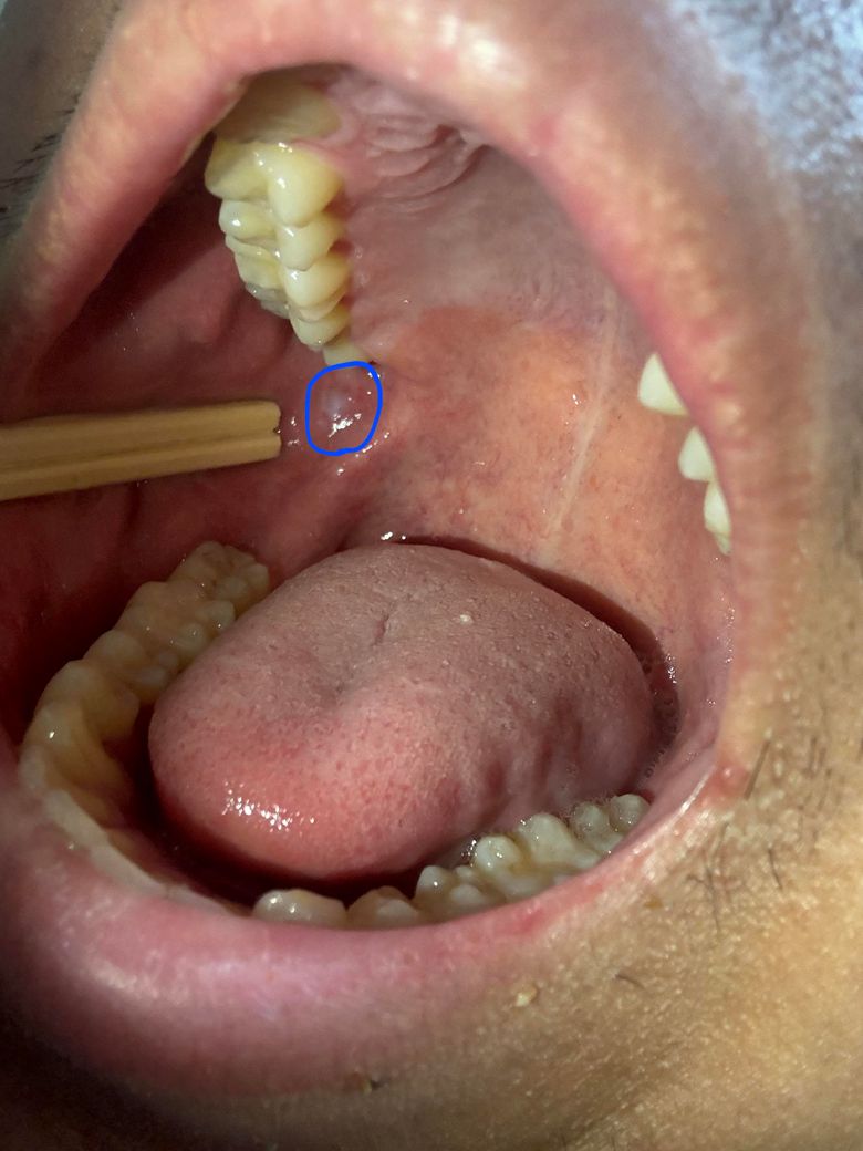 사진속 동그라미친부분이 어저께 갑자기 하얀색으로 변한걸 확인했습니다. 걱정되는게 저게 백반증처럼 위험한건가 싶어서 여쭙습니다. 실제 거울로보면 사진보다 20%더크게, 더 선명하게 하얗게 보이는데 저부분이 또 사랑니에 자극받는 자리라서요.. 물론 사랑니가 점막을 계속 상처입혔지만 그보다 더 심했던 반대편위치는 멀쩡합니다. 정말 위험한걸까요?