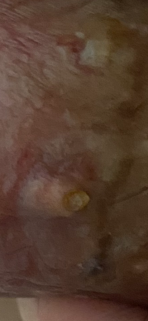 사진이 또렷하지 않아 알기가 어렵습니다. 구강성교가 있었다면 헤르페스가 생각되나 다른 성병과 감별을 위해 비뇨기과 진찰을 받으시기 바랍니다.