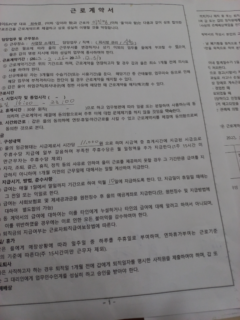 안녕하세요? 아하(Aha) 노무상담 분야 전문가 김호병 노무사입니다.