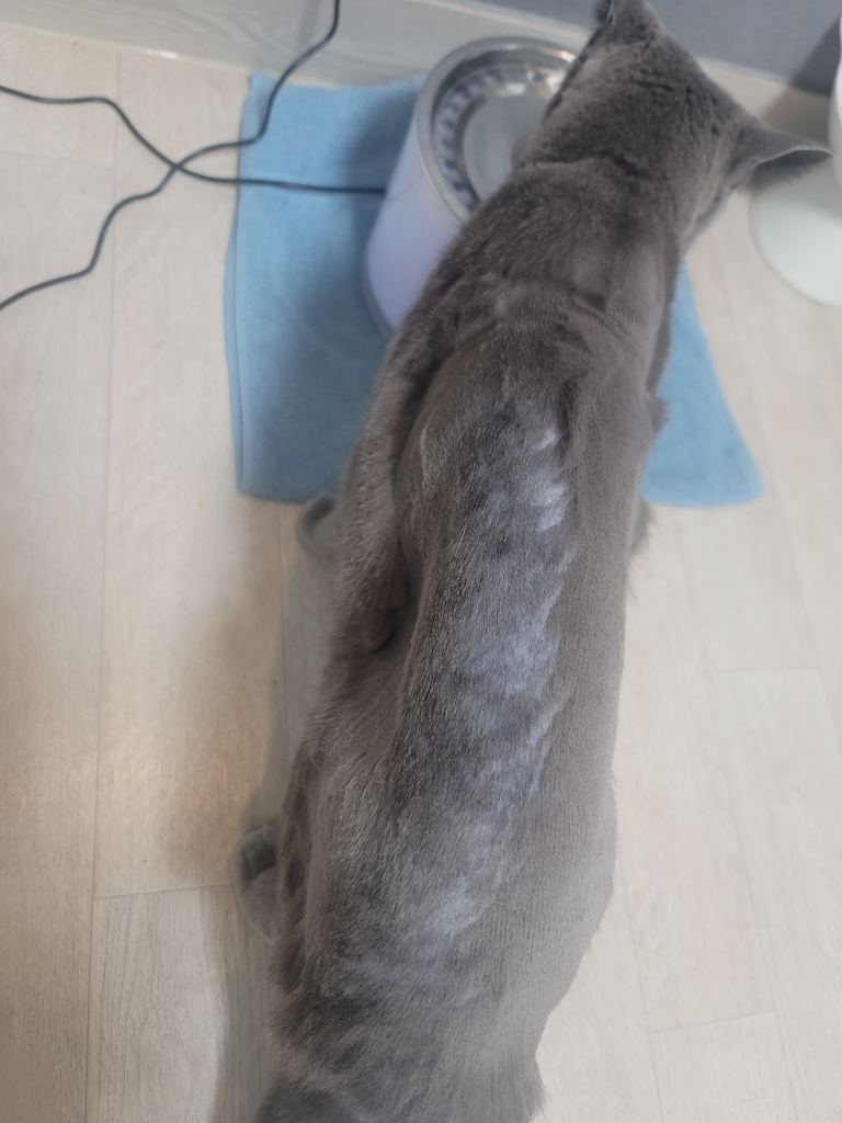 고양이가 자신의 털을 과하게 물어뜯는 행동은 정상적인 상태가 아닙니다.