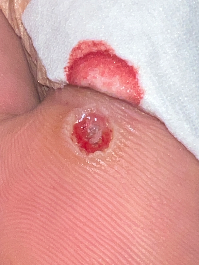 검은색 점으로 보이는 부분은 사마귀가 남은 부분인지, 지혈된 혈관인지 알기가 어렵습니다.