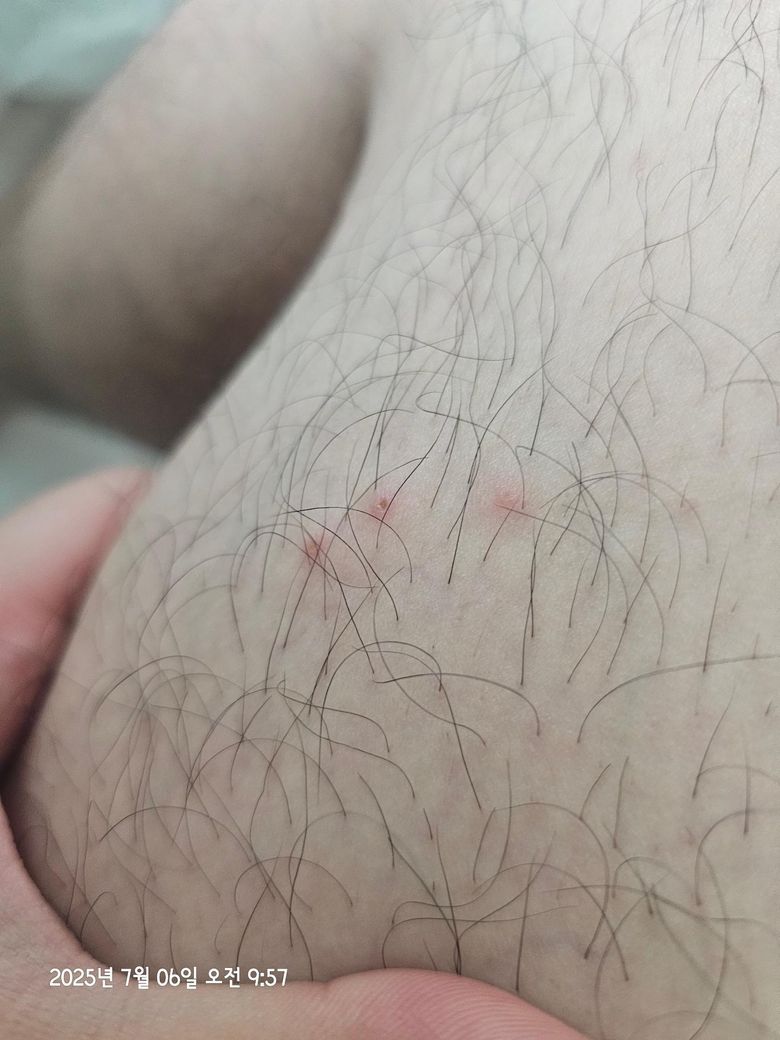 좌측 허벅지 와 우측 종아리 부근에 두드레기?2ㅡ3개씩생기더니 간지러운데