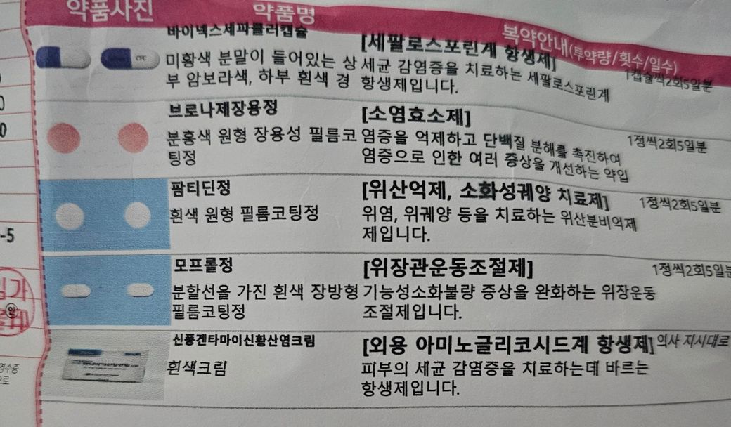 모프를정,팜티딘정,브로나제장용정,바이넥스셰파클러컵슐