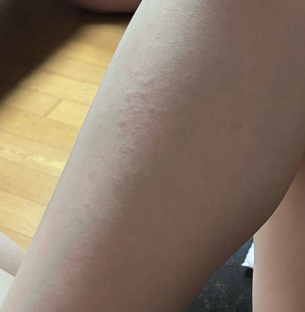 동그랗고 오돌토돌하게 두드러기가 올라왔습니다.