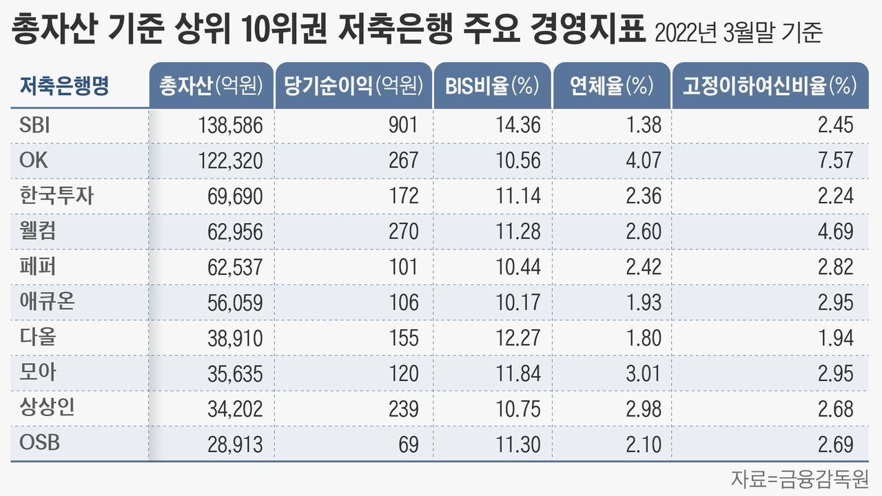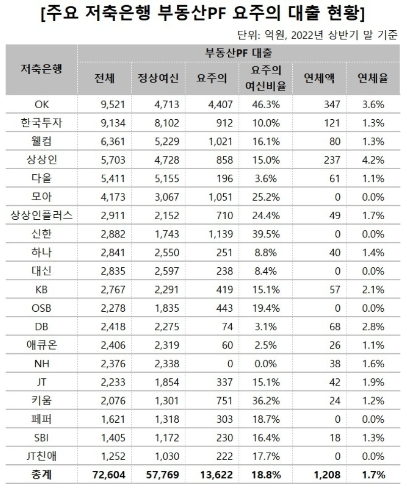 위의 표는 현재 상반기 기준 저축은행들의 PF대출현황과 연체 내용들입니다.