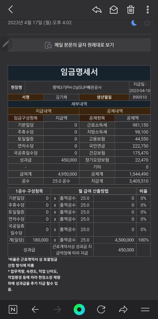 *실제와 임금명세서의 내용이 다를 때에