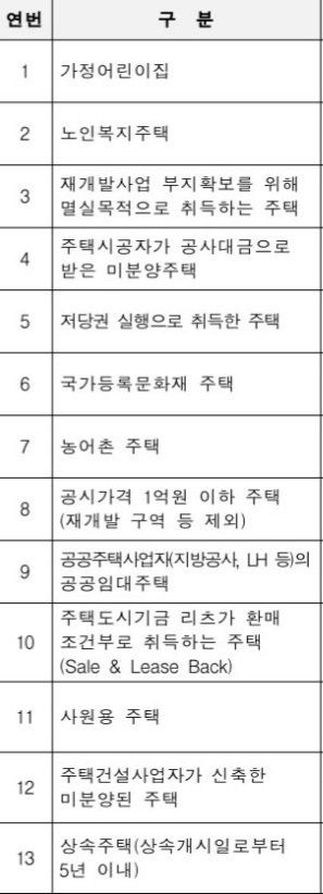 질문하신 내용에 대하여 아래와 같이 답변 드립니다.12번의 경우 주택건설사업을 현재 영위하고 있는 주택건설사업자가 사업을 위해 신축을 하였으나 분양되지 않아 보유만 하고 있는 주택에 대하여 예외시켜주는 규정입니다. 즉, 질문자님은 미분양된 사업용 자산을 보유한 주택건설사업자가 아닌 그저 분양권을 취득한 사람이므로 해당되지 않습니다.