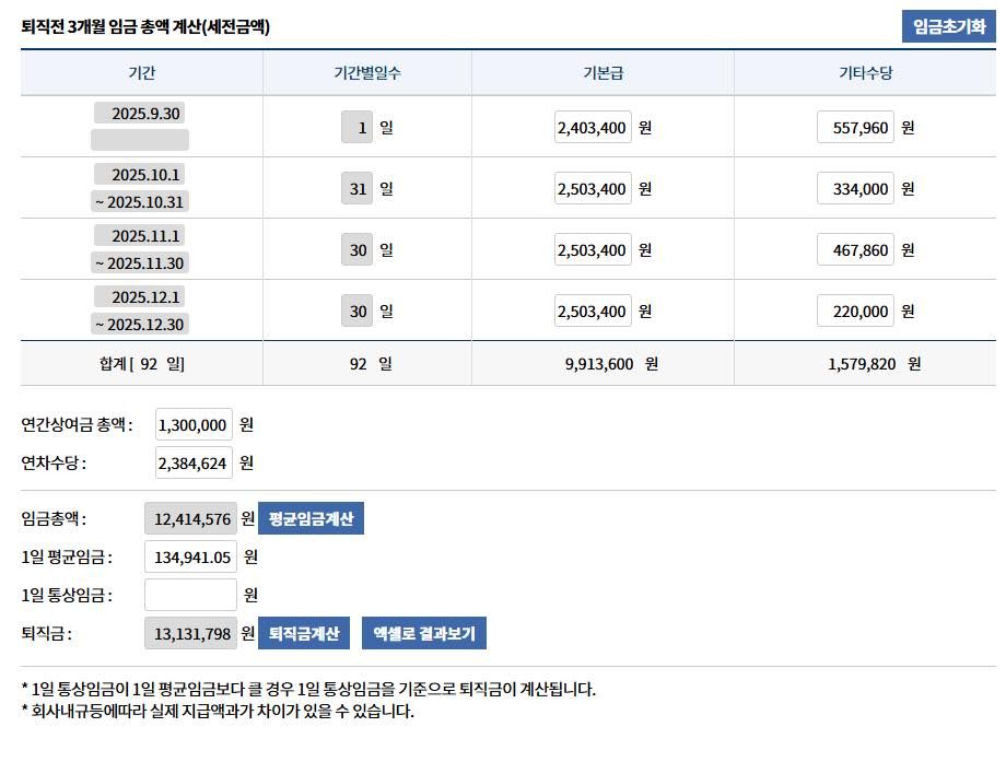 노동부에서 퇴직금 계산은 이미지 처럼보여서요..