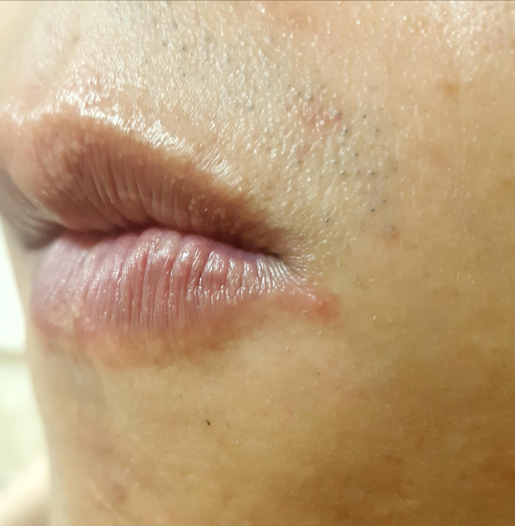 군집성의 수포가 아니게에 헤르페스로 보기는 다소 어렵습니다만 약한 헤르페스의 가능성을 완전히 배제할수 는 없겠습니다. 단순포진성 구순염은 대개 시간이 지나면 별다른 치료 없이 호전을 기대할수 있으니 경과를 보시기 바랍니다.