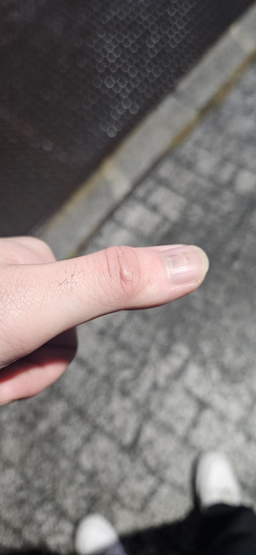 고깃집에서 숯 옮기다가 살짝 데였는데 이렇게 물집? 잡힌 거 같습니다 건들면 살짝 따가운거랑 살짝 묵직한 느낌이 들긴 합니다 병원에 빨리 가보는게 좋을까요?