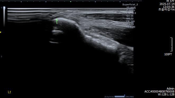 - MRI: 좌측 삼두건 경미한 염증, ulnar nerve supracondylar level 경미한 신호 증가