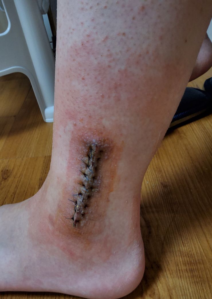 원래 상처 꿰매고 빨간약+거즈+솜+붕대 이렇게 했었었는데 가려워서 붕대 풀었고 솜이랑 거즈는 씻다가 젖어서(최대한 안젖게 씻었는데 습기랑 튀는 물때문에 솜이 물을먹어서 젖은것같습니다) 뗐습니다.