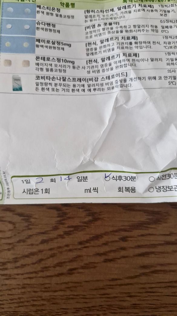 알레르기성 비염으로 처방받으신 약들을 복용하시고, 나잘스프레이 제품을 사용하시면서 타이레놀정도 추가로 복용하실 수 있습니다