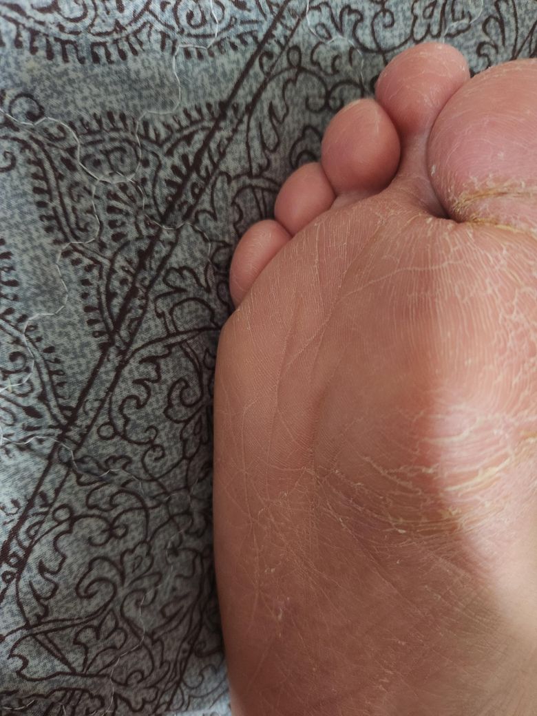 엄지발가락과 발바닥 오른쪽 보시면 각질이 누렇게 변해있어요. 건선인가요? 아님 무좀으로 분류하나요?