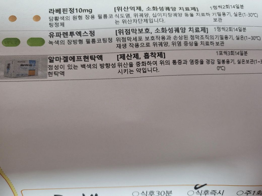 라베핀정,유파렌투엑스정,알마겔에프현탁액 복용중인데요