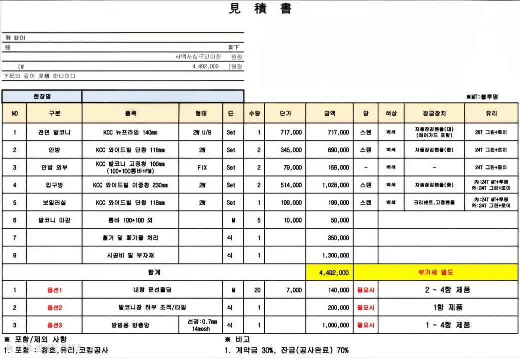 새시 견적서를 받았는데 보는법을 모르겠어요