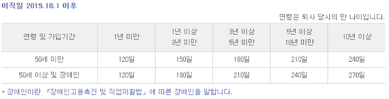 50세 미만 210일, 50세 이상 240일