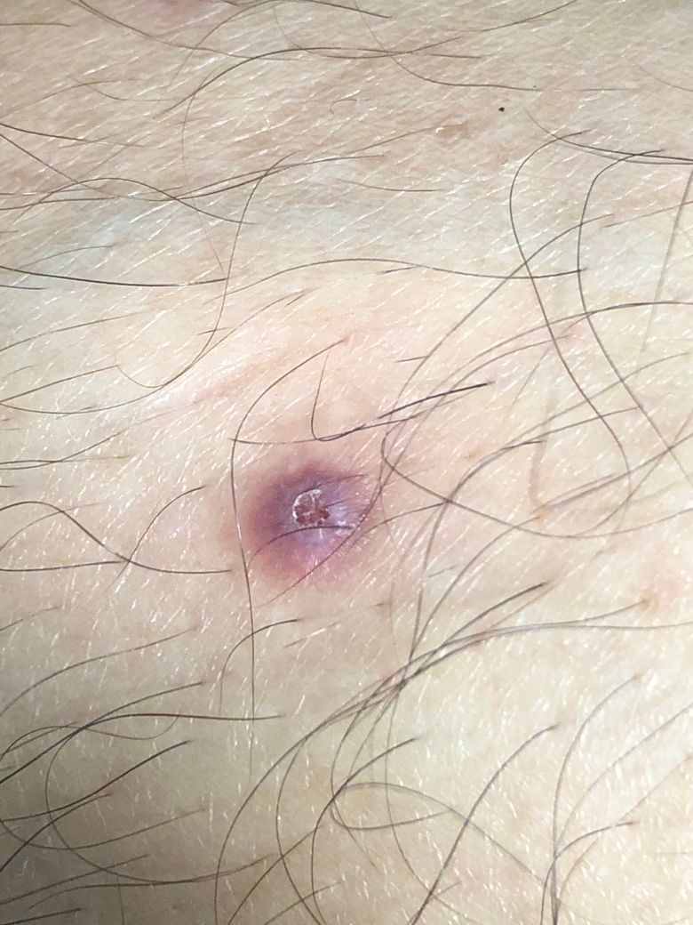 아마 시작은 모낭염정도 아니었을까 싶습니다. 자꾸 건들면 염증이 가라앉지 않고 심해집니다. 항생제 연고를 바르면서 지켜보시는 것도 좋겠습니다.