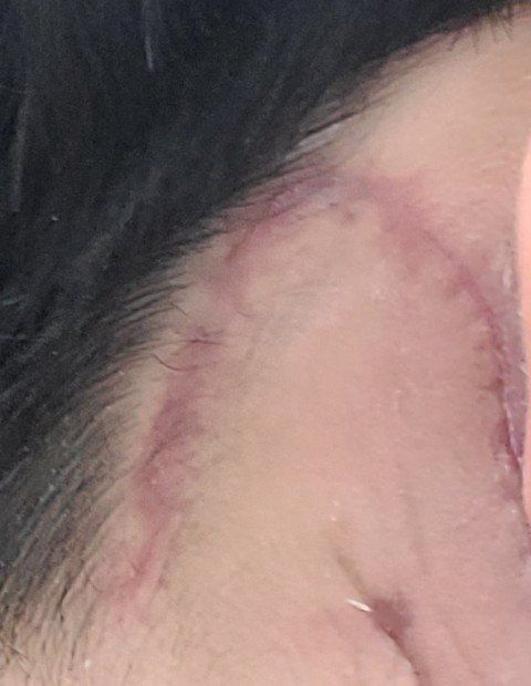 피부과 혹은 성형외과 진료를 통해 흉터 부위를 줄일 수 있는 지 진료를 받아 보시는