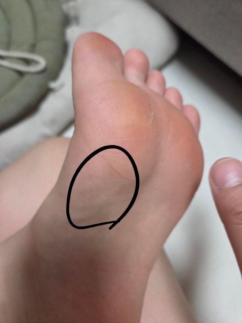 사진 위치를 보면 박바닥 앞쪽이라서 일시적인 압박,근육/인대의 피로일 가능성이 큽니다.