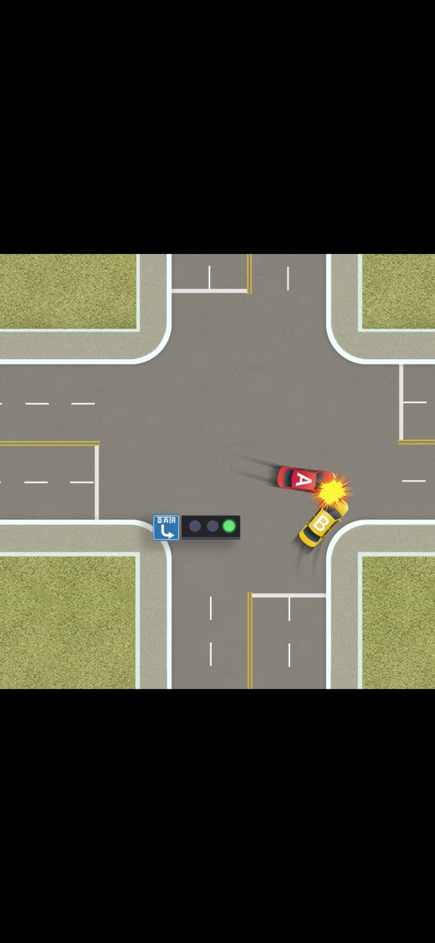 : 우선 사고장소는 신호등이 있는 사거리( 삼거리인지는 알수 없음)에서 발생한 사고로 보이고,