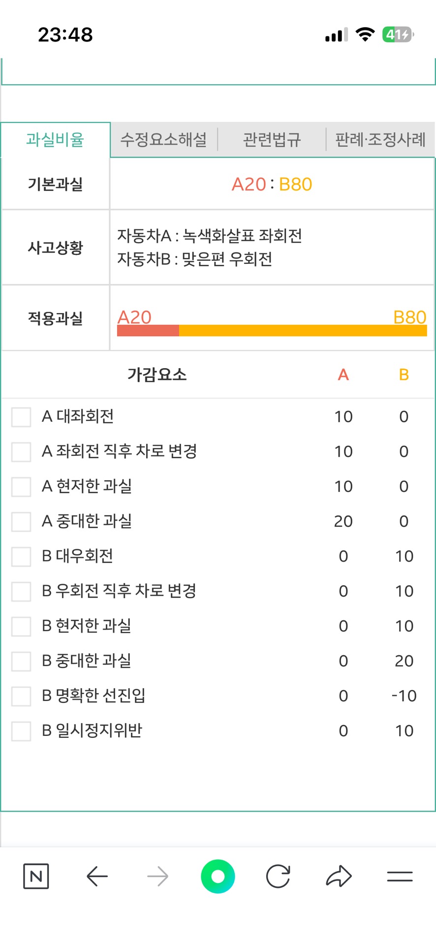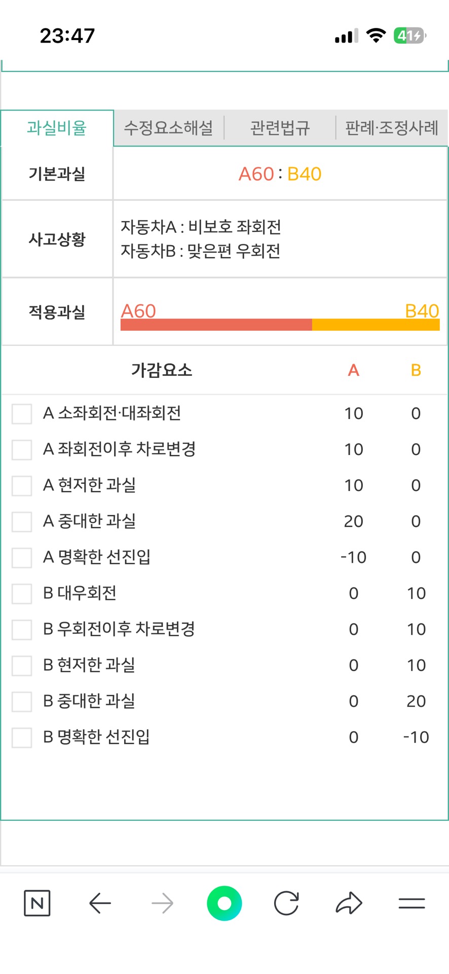 기타 다른 도로상황, 선진입여부등에 따라 일부 과실이 조정될 수 있습니다.