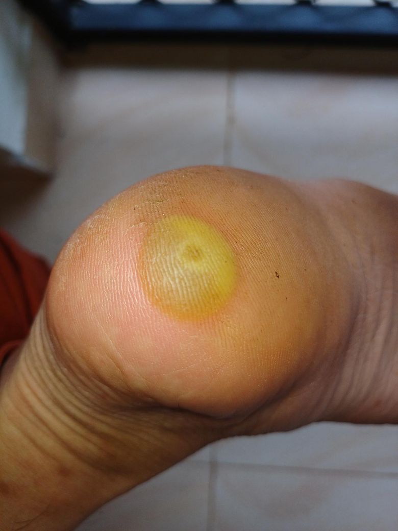 자갈을 밟은 자리는 물집 중간입니다.