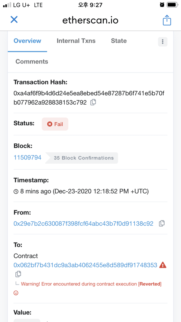 메타마스크에서 Stpt 전송실패왜그러죠?