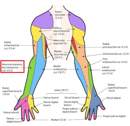 아래 그림중 어느 한 부위에 증상이 발생하는 부위가 해당된다면 압박에 의한 말초신경병증을 생각해볼 수 있겠습니다.