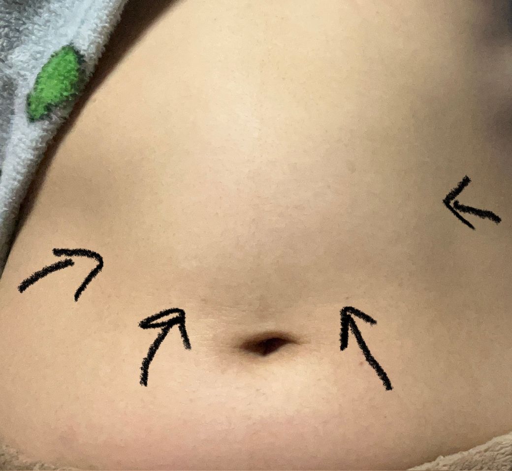 거울로 봤을 때 배꼽 위쪽 화살표 친 부분으로 동그랗게 덩어리가 있어보이는데 내장지방일까요 ㅠ 배꼽 위가 뭉친거처럼 딱딱하고 불편합ㅁ니다