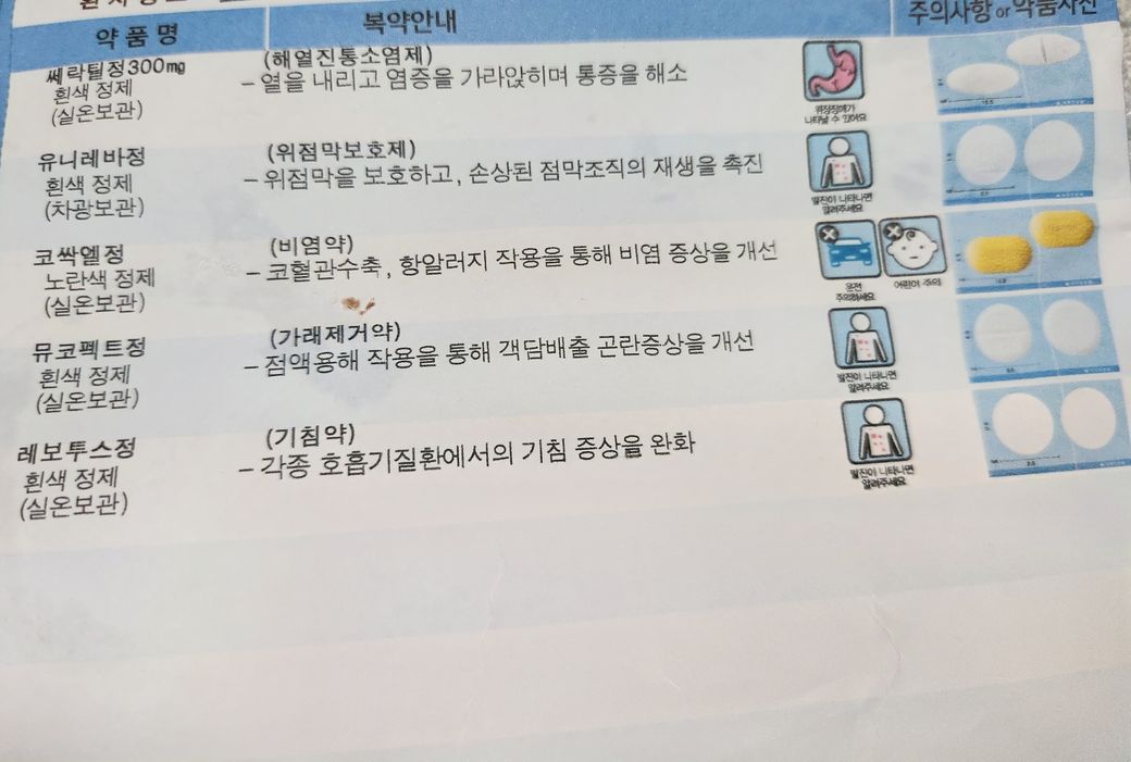 오늘 저녁에 감기약 처방을 받고 약을 먹고나서 눈 밑이 붓는 증상이 생겼는데 아래 사진에 있는 약중에 그런 부작용이 있는 약이 있을까요?