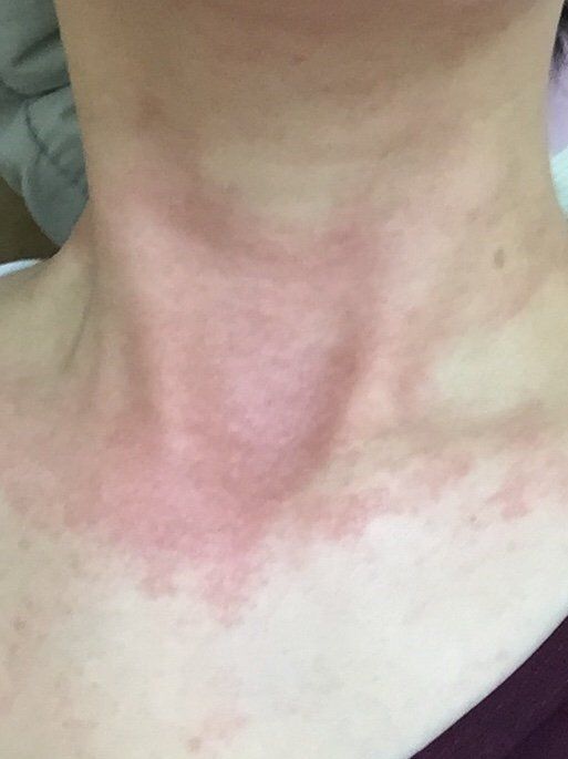 약 3개월이 지난 지금은 알레르기가 전처럼 심하진 않지만 빨갛게 오돌토돌 피부결이 안 좋은 상태이고 전에는 목과 가슴 일 부분만 증상이 있었다면 지금은 목과 가슴 외에 가슴 아래 부분까지 퍼진 상태입니다. 평소에는 막 가렵거나 따갑진 않지만 피부를 만지거나 옷 등이 닿으면 아직 예민한 상태인데요. 무엇보다 밥 먹고 난 후나 자려고 누울 때 열이 올라오면? 2-3군데 모기물린 것처럼 붉게 올라오고 엄청 간지럽습니다. 항히스타민제를 먹으면 모기 물린 것처럼 올라오진 않지만 피부결이 빨갛게 된 것은 잘 안 가라않더라구요.