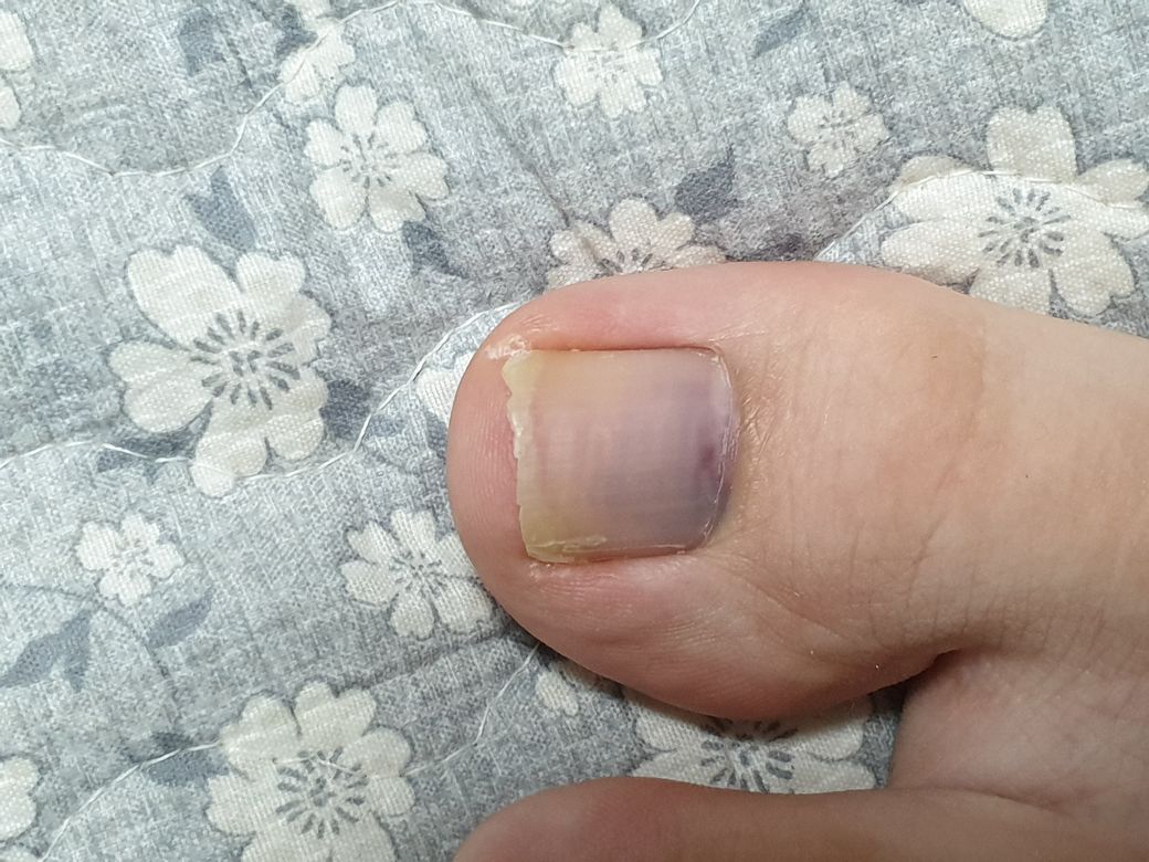 사진대로 발톱안에 피멍이 살짝났습니다. 이럴땐 어떻게해야하나요? 통증은 눌러보면 아주 살짝 있습니다.
