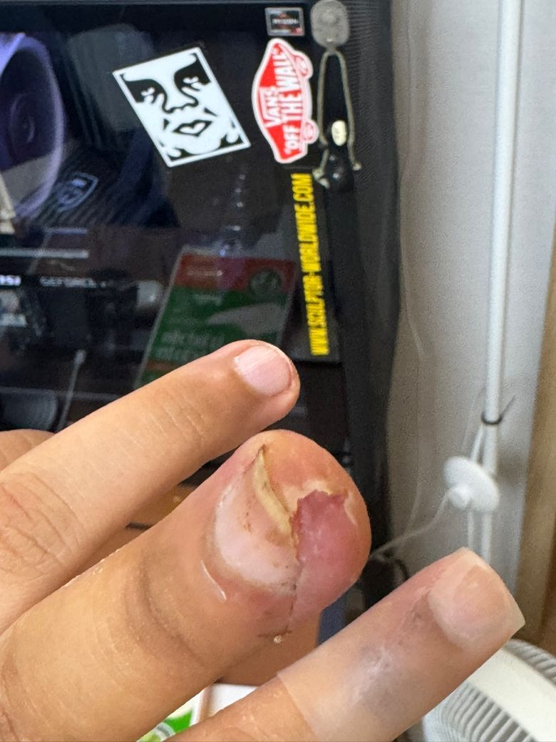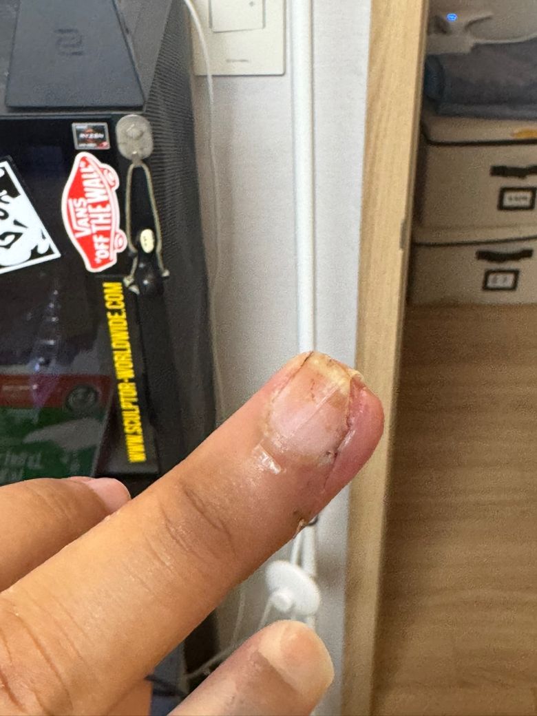 손톱 대각으로 잘린 모양대로 상처가 생겼고 바로 응급실 이동해서