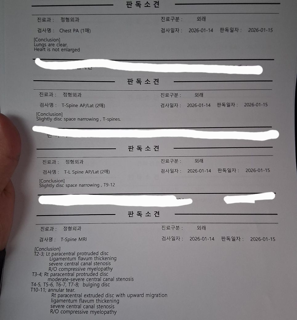 흉추디스크 MRI 판독 결과지 질문드립니다.