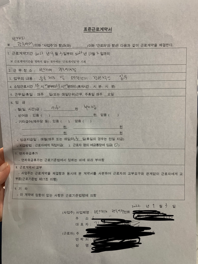 2. 한편, 근로계약서를 체결한 근로자에 해당하므로 프리랜서로 사업소득세인 3.3%를 공제하는 것은 원칙적으로 맞지 않습니다.
