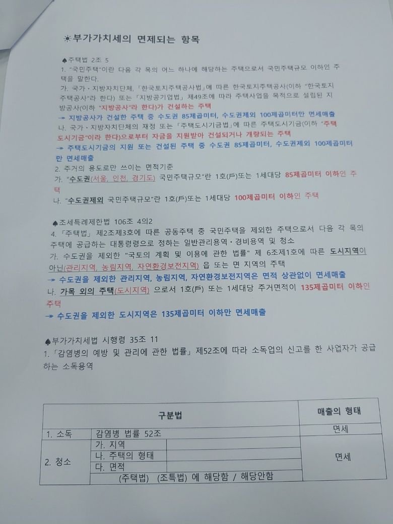 청소업 운영중인데 면세매출이 되는거라고 자료를 받았습니다. 보통 25평에서 32평 청소를 하는데 대부분 면세라는 말인건지 이해가 가질않아요. 일반건설사의 주택도 면세인건지 궁금합니다.