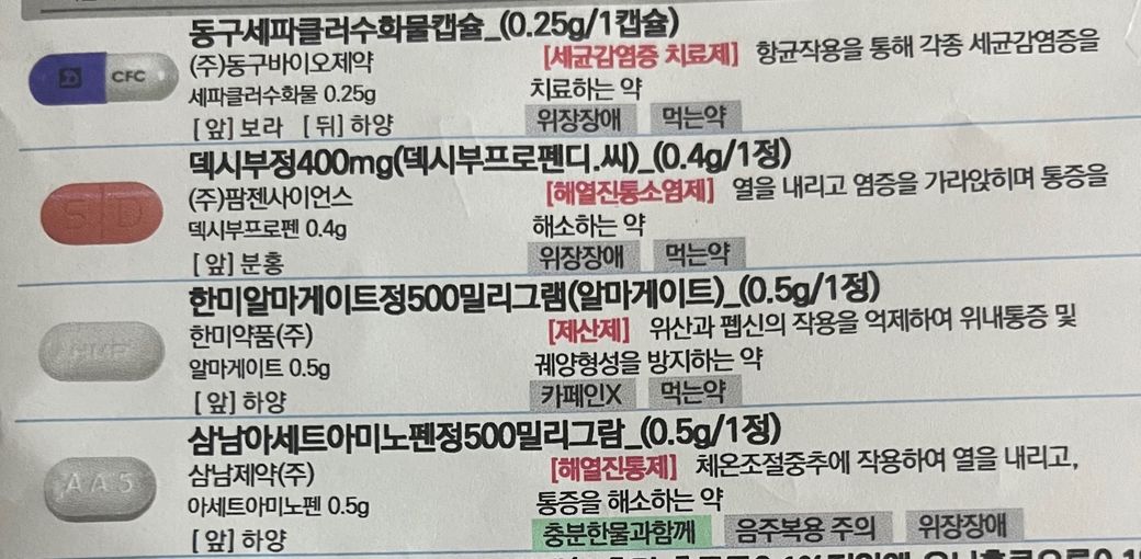 항생제 중복 성분을 제외한다면 증상이 좀 나아질 수 있고, 식후 즉시 충분한 물과 함께 복용을 해주세요.