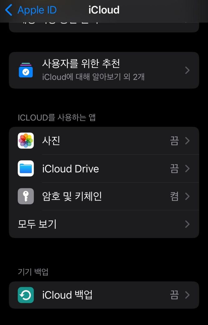 저렇게 들어가서 사진 "끔" 해두고 그 밑에 섹션에 icloud 백업도 "끔" 저 두가지를 모두 해두면 되는걸까요? 저 두가지를 꼭 다 끔으로 해둬야 백업이 안 되는건지~! 궁금합니다