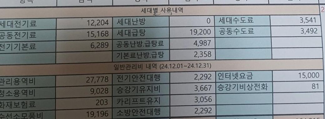 관리비가 거의 15만원 가까이 나옵니다....