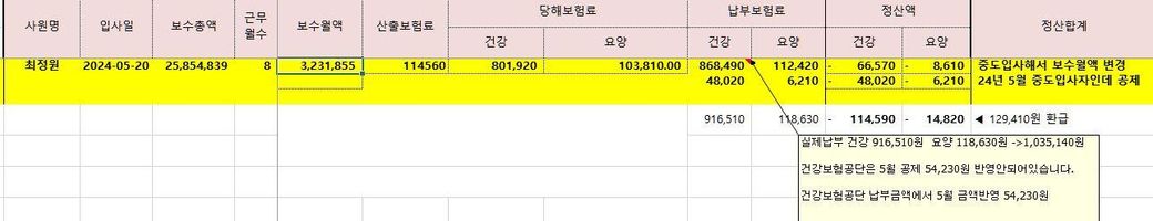 1.요율정산이던 고지서금액대로정산이던 24년에 1,035,140원 회사에서 공제했고 보수월액이 3,231,855원으로 픽스 된거면 회사는 환급해줘야하는 의무가있는게맞지않나요?